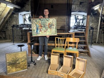 Versteigerung von Fundstücken im Foyer des Rathauses