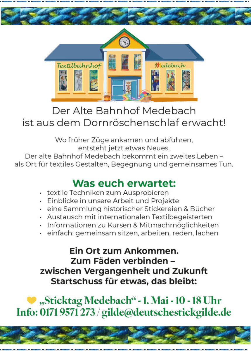 Am 1. Mai von 10-18 Uhr zeigen wir es euch: Der Textilbahnhof Medebach wird wiederbelebt – mit echter Handarbeit, kreativen Einblicken und der Idee, diesem besonderen Ort neues Leben einzuhauchen.