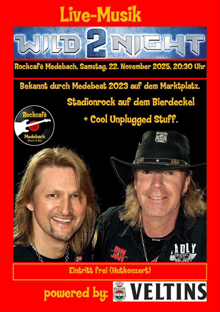 Hallo zusammen, am Samstag, 22. November, steht das nächste Live-Event im Rockcafé Medebach auf dem Programm. Zu Gast sind Wild2Night, ihr erinnert euch an die Band möglicherweise durch ihren Auftritt…