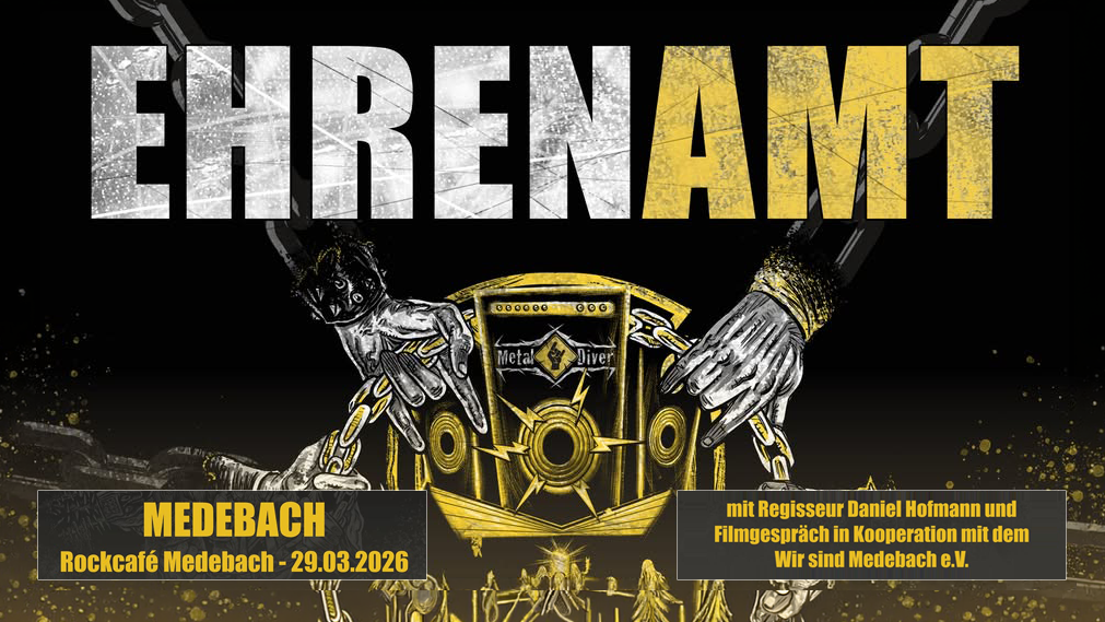Rockcafé Medebach Marktstr. 1, MedebachHallo zusammen, am Sonntag 29. März, zeigen wir im Rockcafé einen interessanten Dokumentarfilm über das Ehrenamt. Trockenes Thema? Denkste... Über mehr als ein Jahrzehnt ist das Metal-Diver-Festival in Marsberg gewachsen,…
