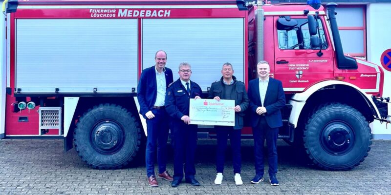 Wenn’s drauf ankommt, stehen sie bereit – die Frauen und Männer der Freiwilligen Feuerwehr Medebach. Damit sie auch künftig für alle Einsätze bestens gerüstet sind, hat die Sparkasse Mitten im Sauerland die ehrenamtlichen Einsatzkräfte mit einer Spende in Höhe von 4.500 Euro unterstützt.
